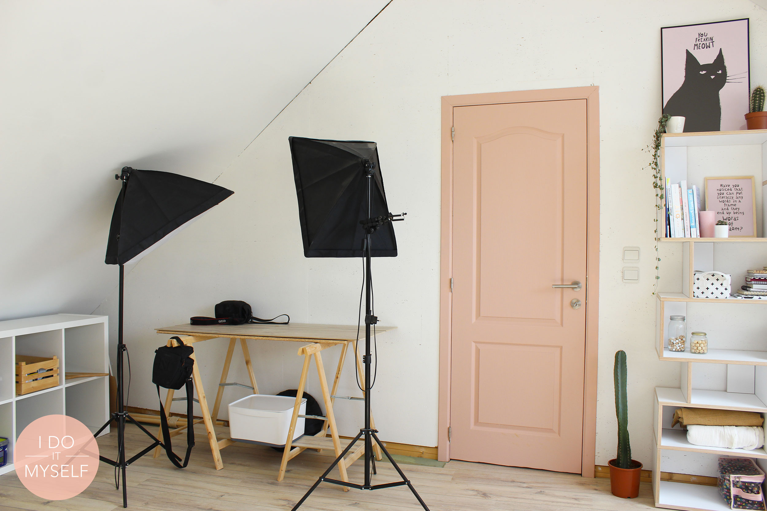 De l’autre côté de ma porte on trouve mon coin photo. J’ai simplement déposé un morceau d’osb sur deux tréteaux.