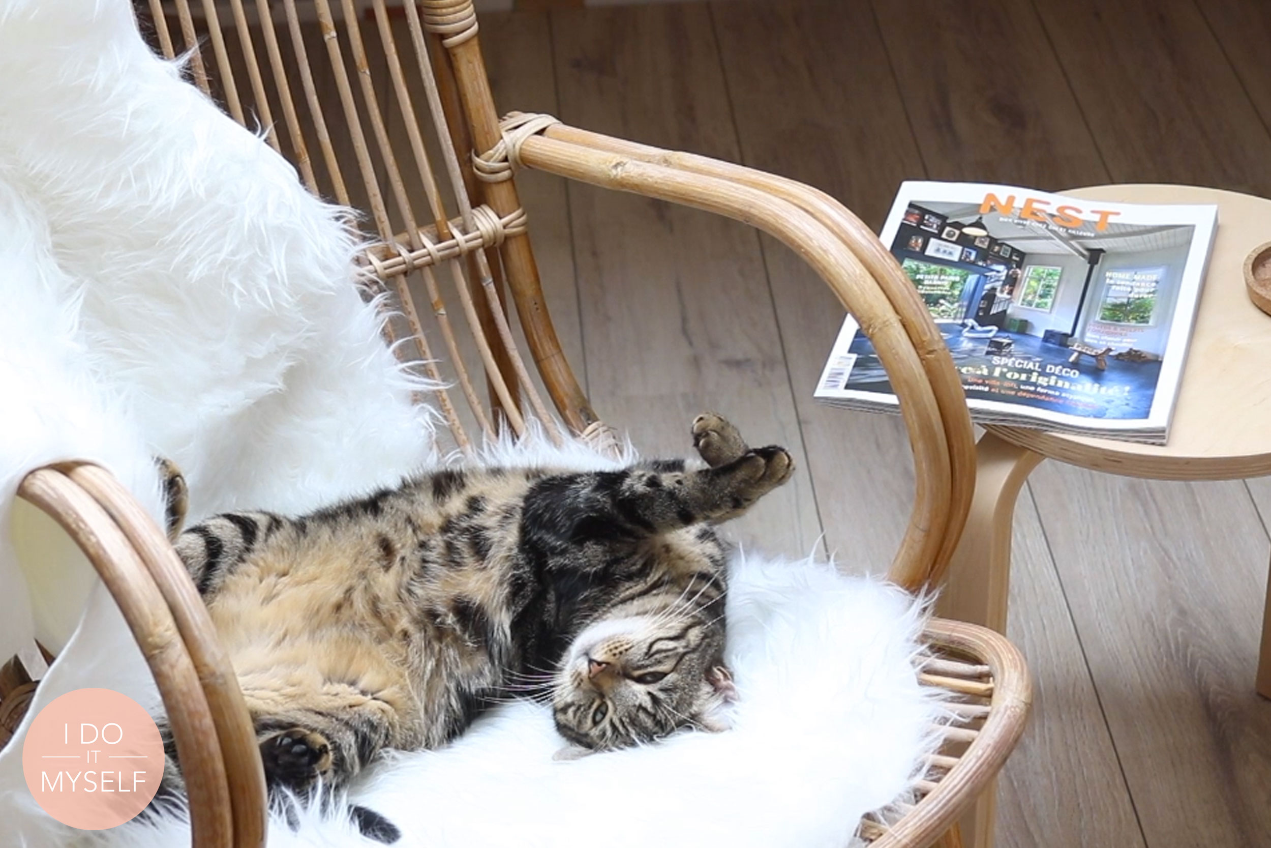 => Astuce : Comme sur beaucoup de mes chaises, j’ai rajouté une fausse peau dessus pour encore plus de confort et surtout pour le côté cosy.