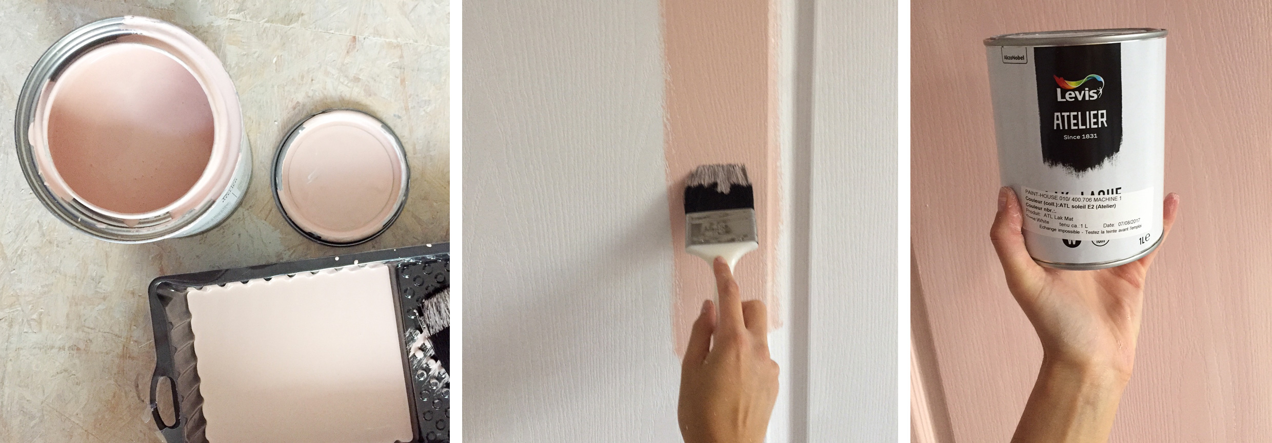 Vous le savez je suis une grande adepte du blanc… et pour mon bureau j’ai voulu changer et apporter une touche de couleur en peignant ma porte en rose. Après avoir fait un sondage auprès de vous tous sur instagram et sur Facebook (D’ailleurs c’était chouette car vous étiez très nombreux à être d’accord avec mon choix de la couleur) je me suis dirigée vers un joli rose de la gamme LEVIS ATELIER réf : ATL soleil E2 (Atelier) Lak Mat. qui vient également de chez PAINT HOUSE. Je suis ravie, la couleur correspond tout à fait à ce que je voulais! J’ai donc acheté une porte à peindre chez Brico, et j’ai placé 2 couches de peinture.
