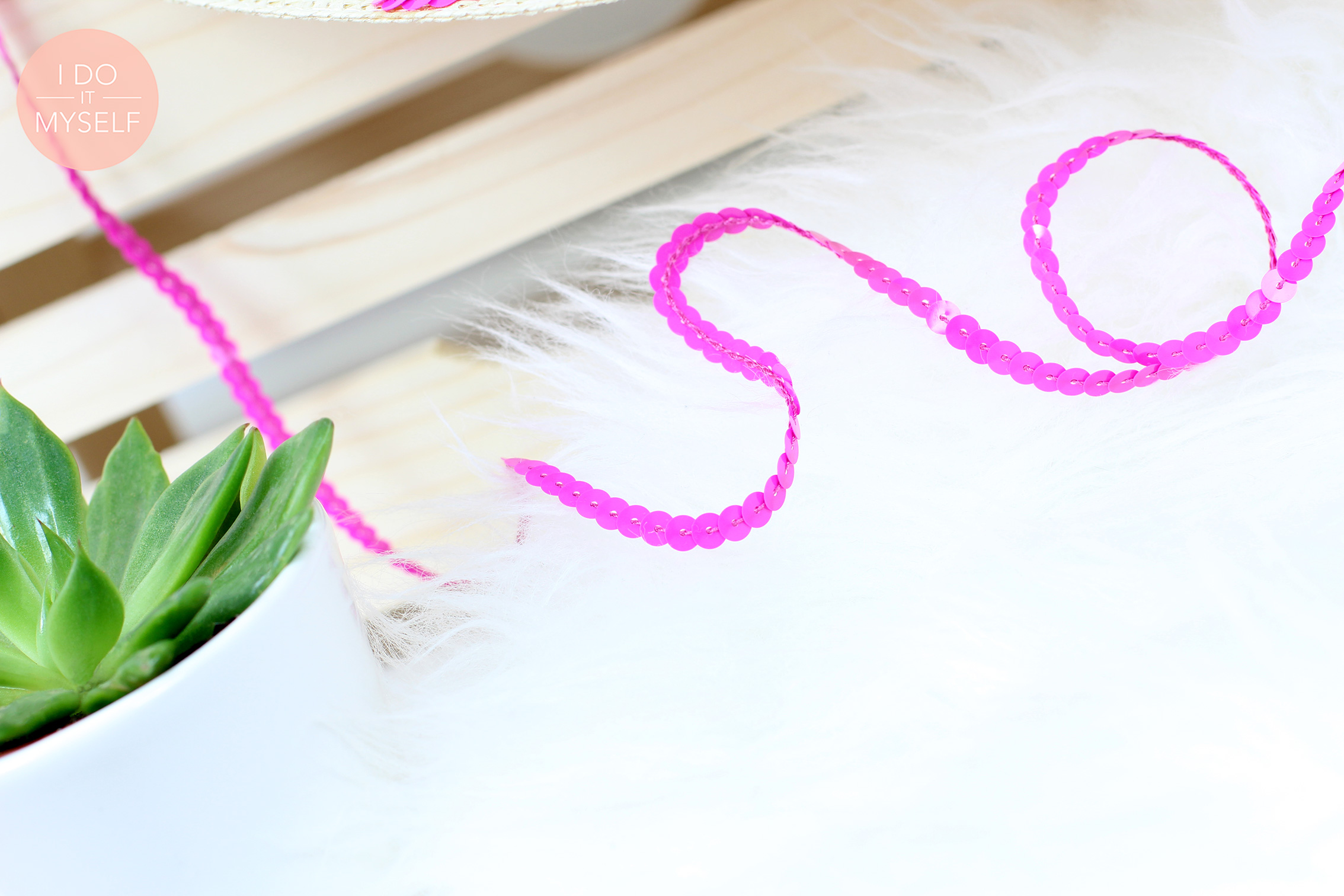 Avant de commencer à coller, placez votre cordon de sequin sur vos lettres pour voir comment le positionner pour devoir coupe un minimum. C’est ce qui sera joli!