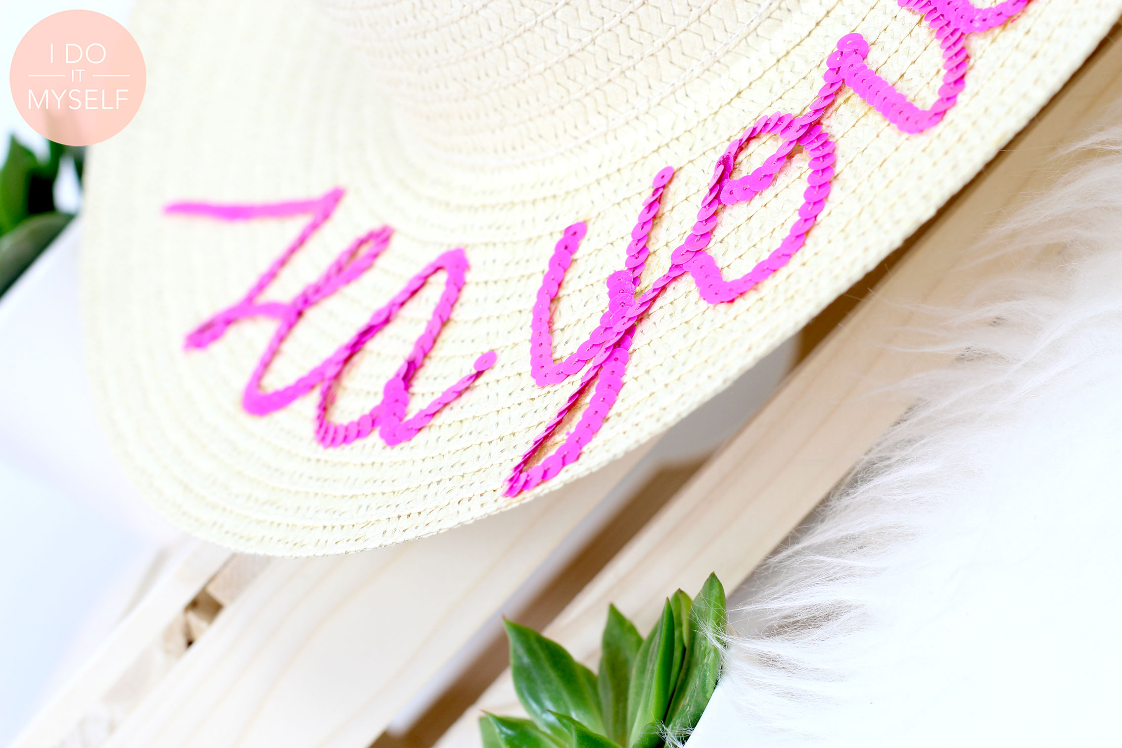 Recopiez votre phrase sur le chapeau à l’aide d’un marqueur de la même couleur que votre fil de sequin.