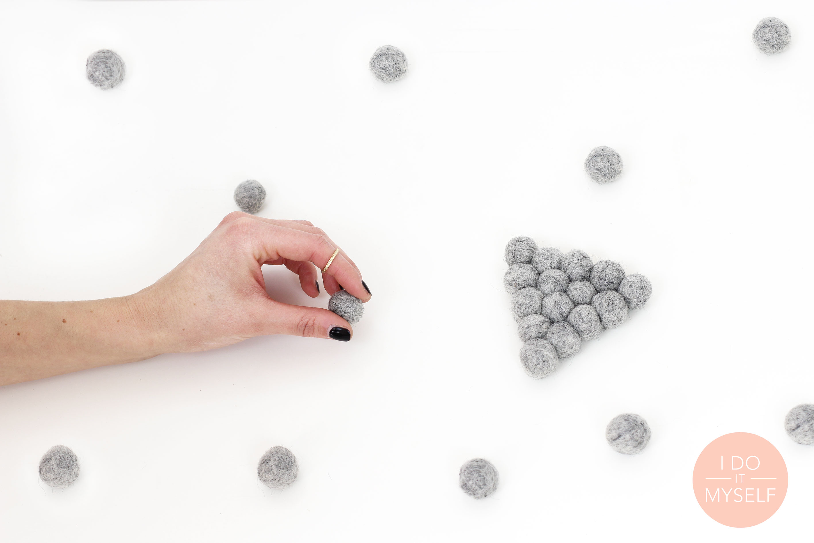 J’ai utilisé 15 perles de laine pour ma sous-tasse triangulaire.