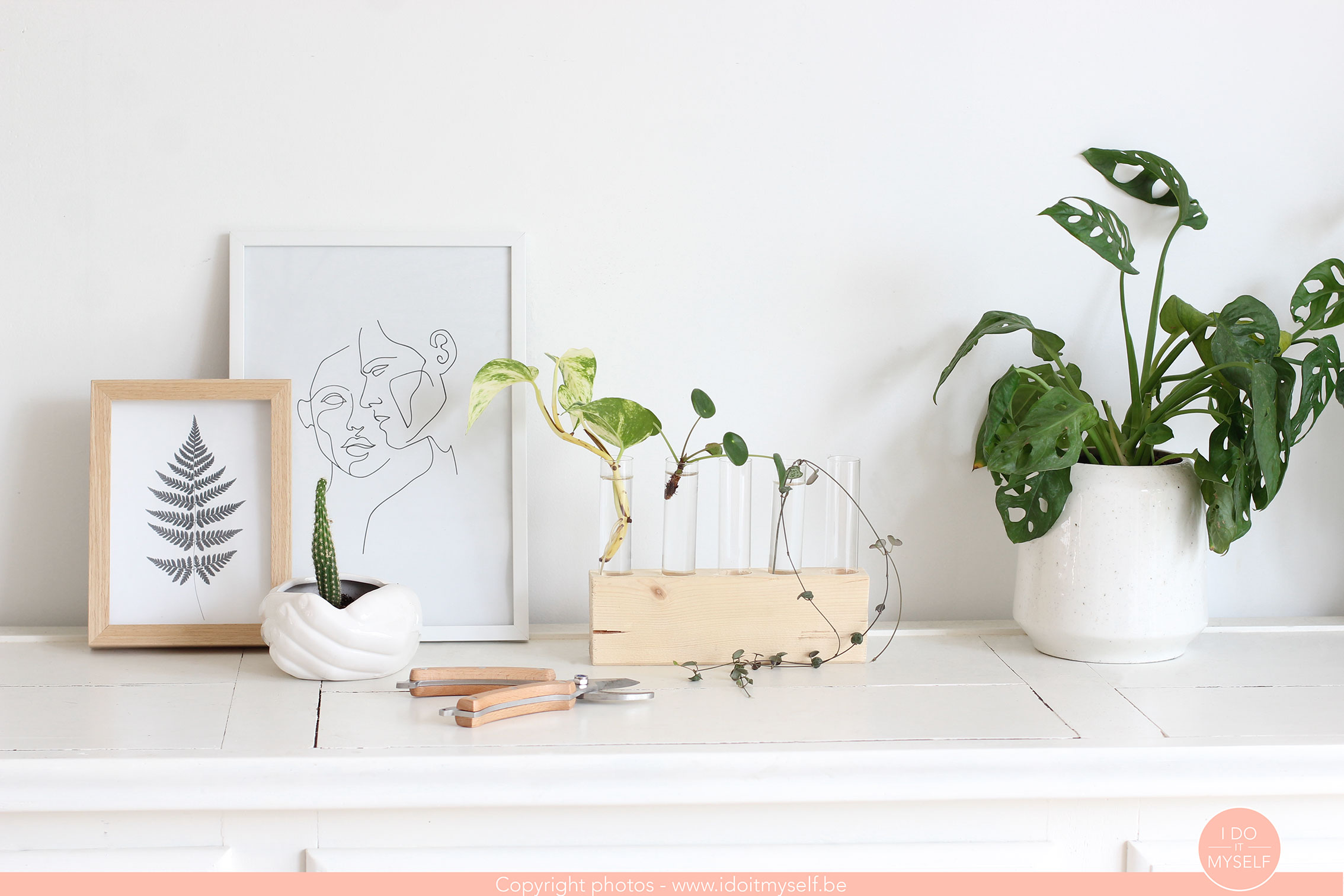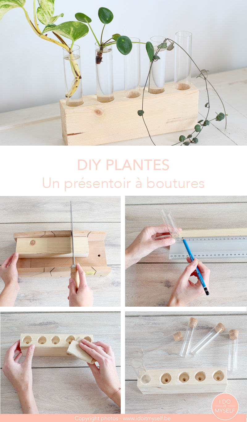 Pourquoi ne pas faire germer vos petites boutures dans un joli présentoir et les avoir toutes au même endroit? Je vous explique le tutoriel pour créer très facilement ce petit stand à bouture.
