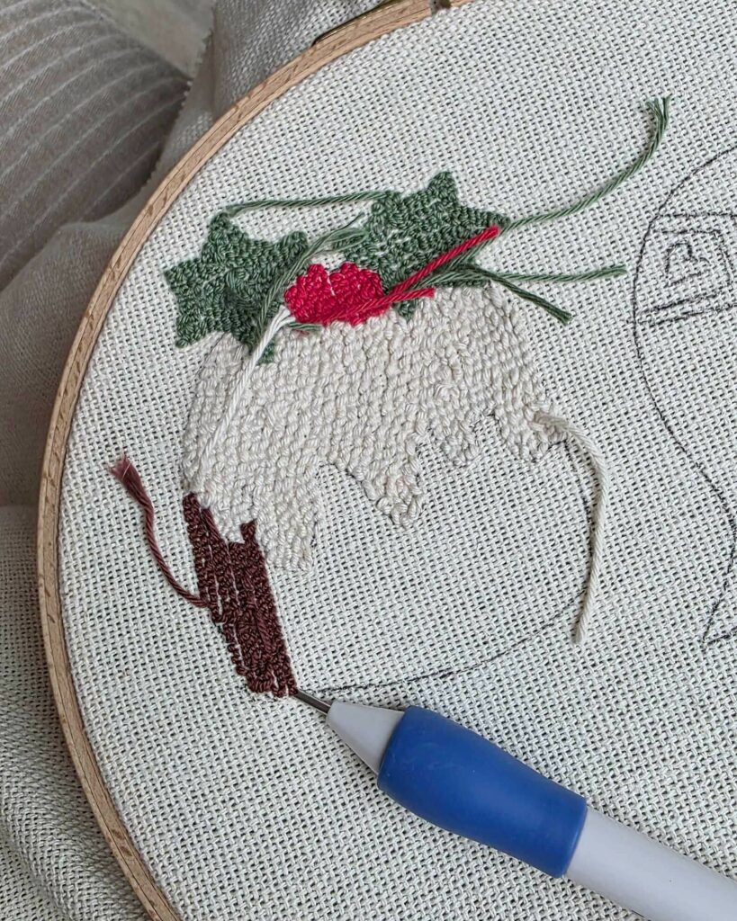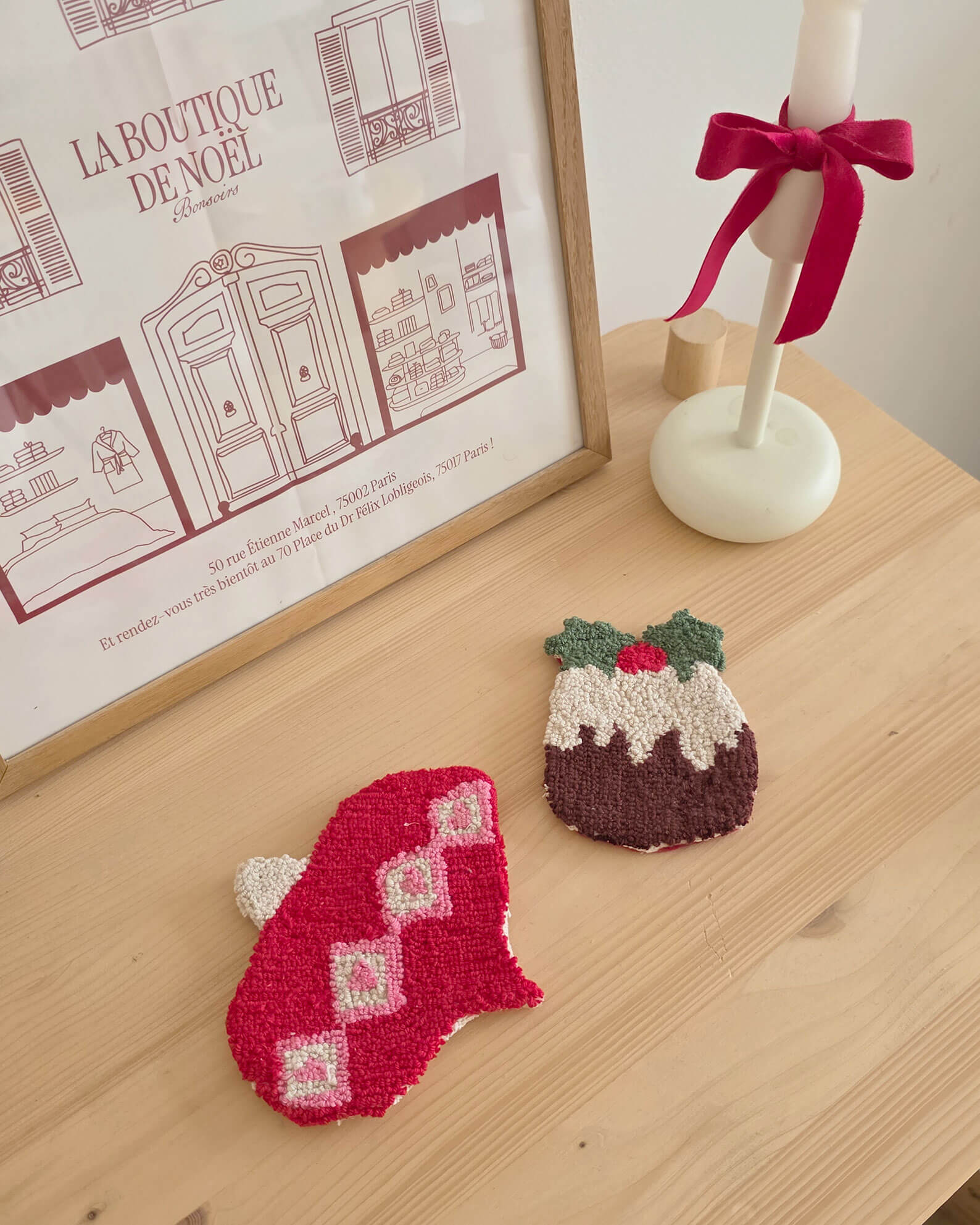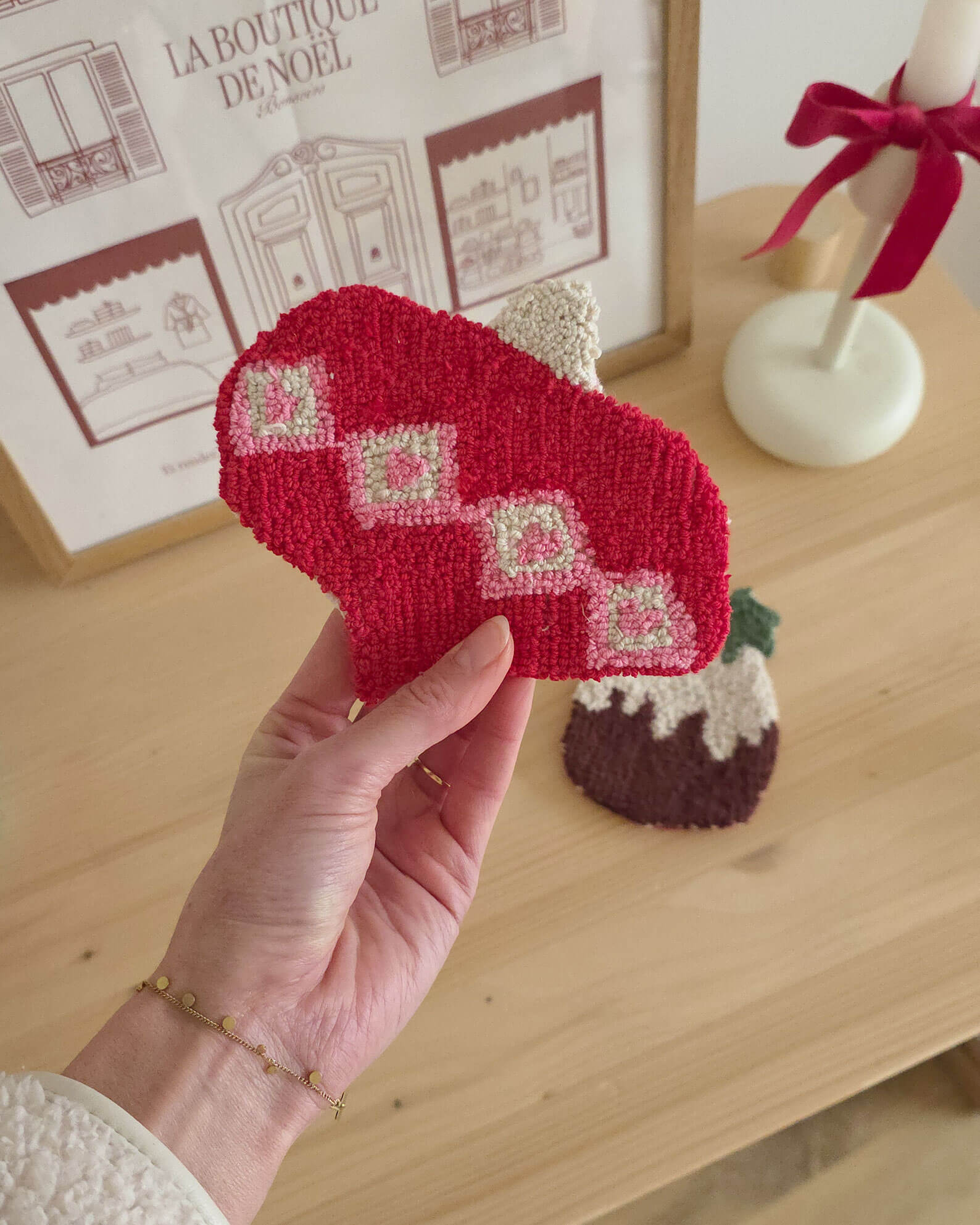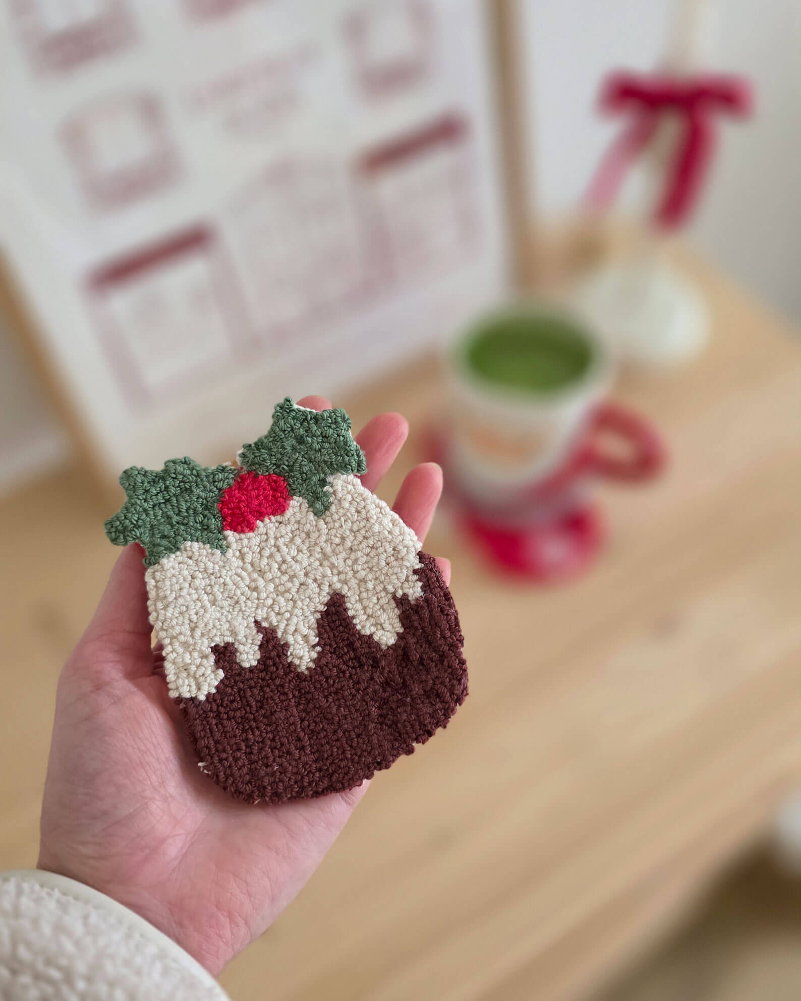 J’adore les sous-tasses en punch needle ! J’en avais déjà pour l’été et l’automne, mais pas encore pour Noël… Il fallait absolument que j’y remédie.