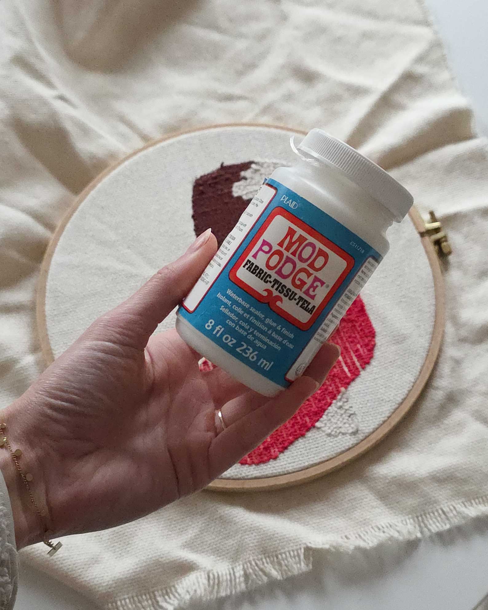 - Recouvrez l’envers de colle pour tissu et laissez sécher.