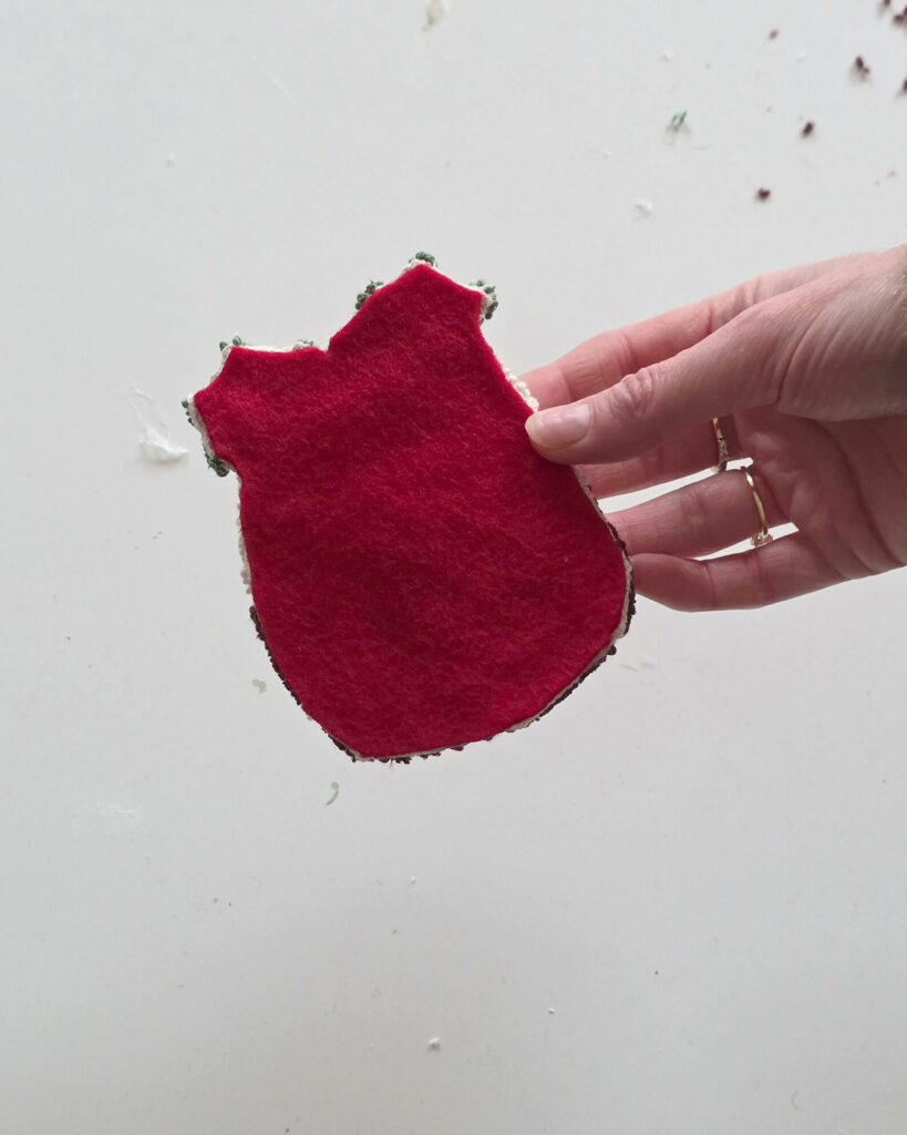 - Pour une finition plus propre, collez votre création sur un morceau de feutrine découpé à la même forme.