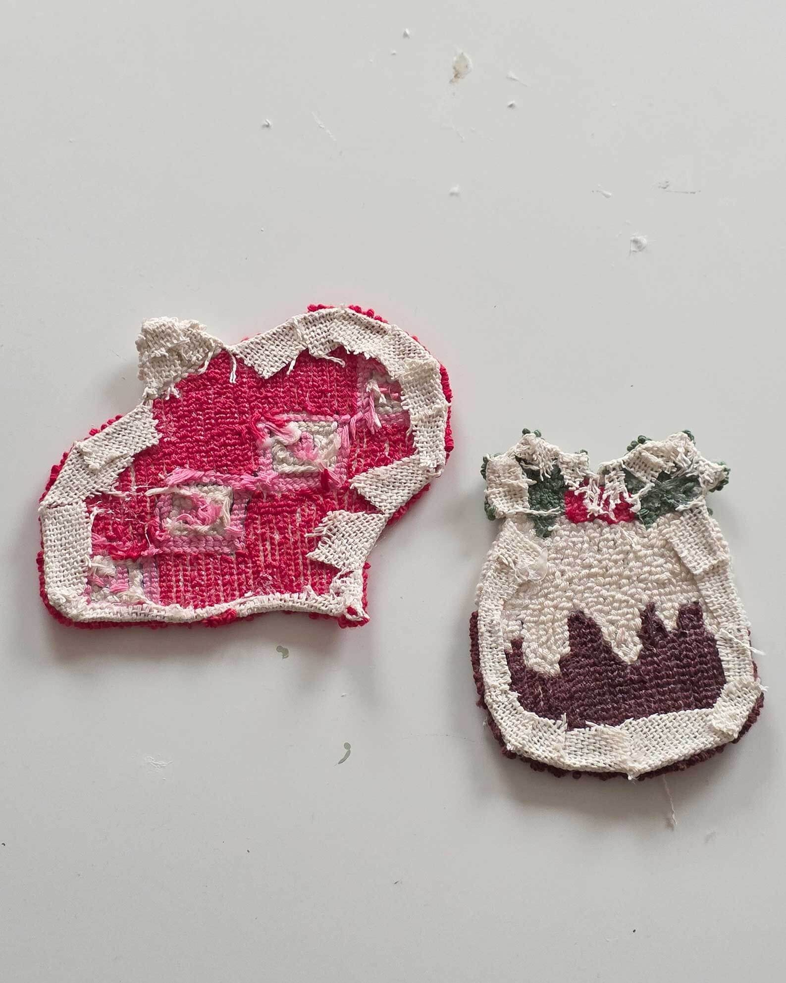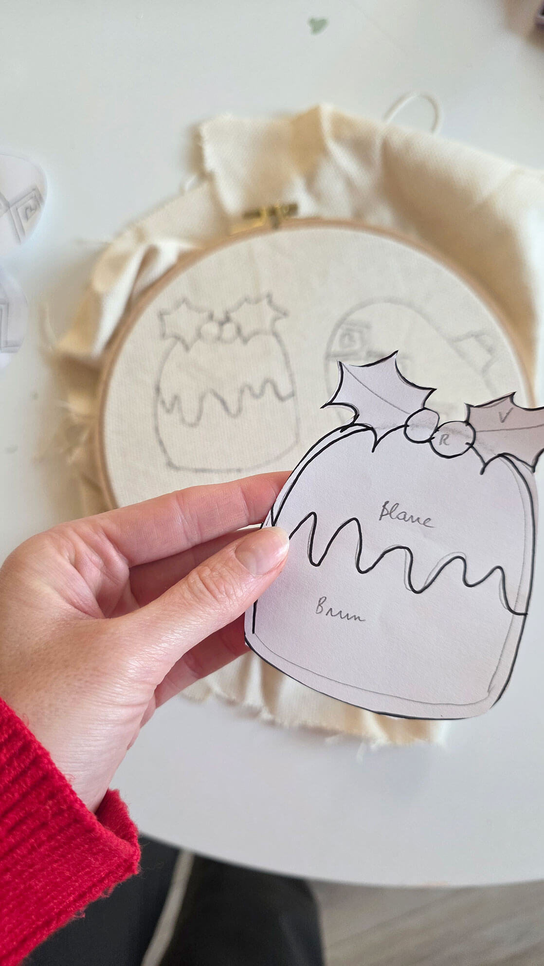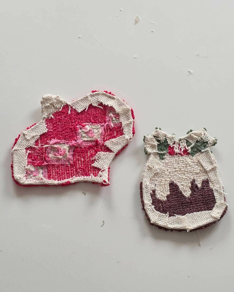 J’ai trouvé beaucoup d’inspiration sur Pinterest. Finalement, j’ai choisi deux motifs : une sous-tasse en forme de gâteau de Noël et une autre en forme de boule de Noël.
