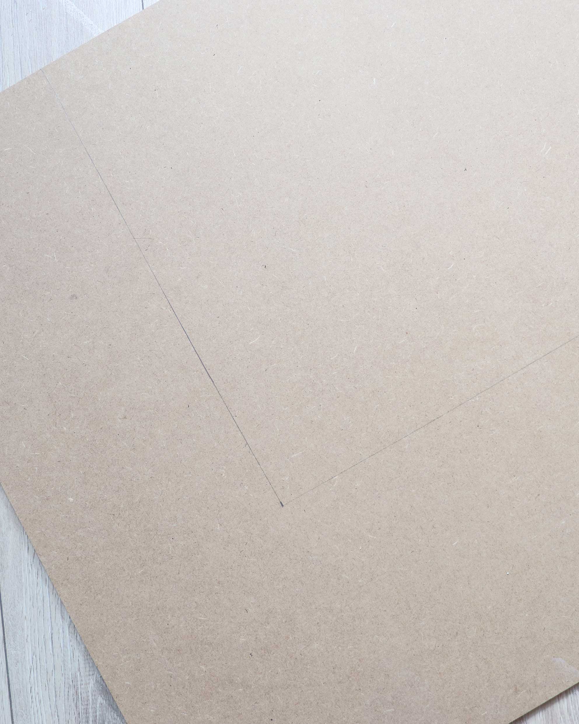 J’avais encore des chutes de MDF à la maison d’un précédent DIY. Elles n’étaient cependant pas à la bonne taille. J’ai mesuré et tracé des lignes pour m’aider dans ma découpe. J’ai choisi de faire deux moodboards de 50 cm x 1 m, mais vous pouvez ajuster la taille selon l’espace disponible dans votre bureau.
